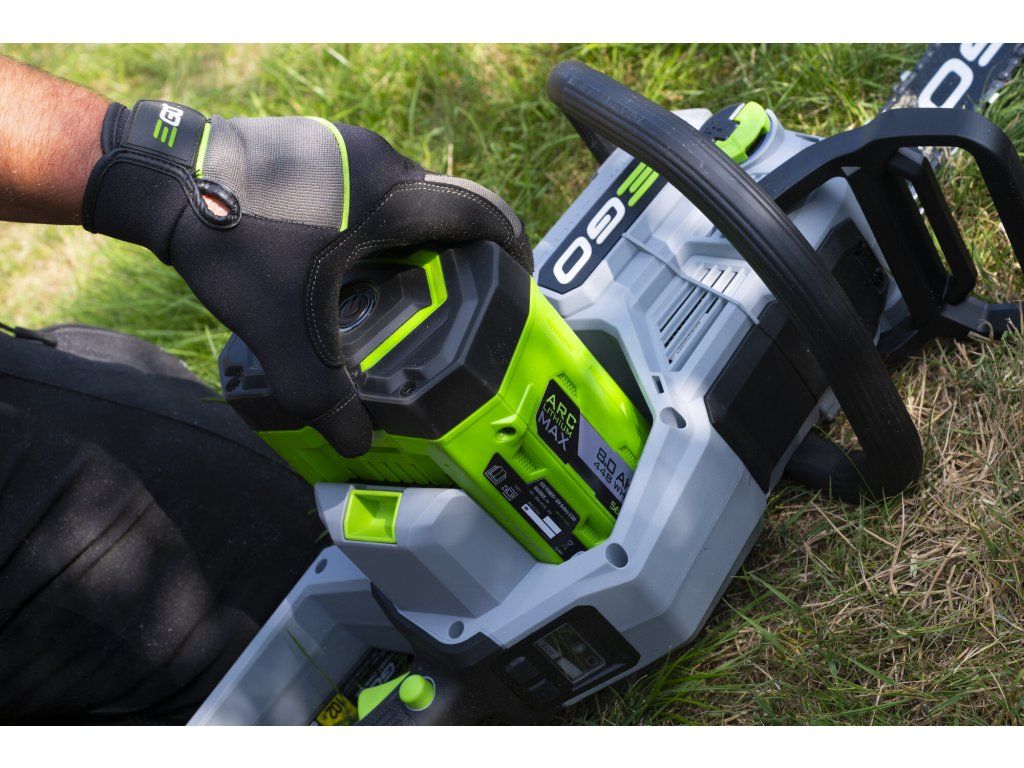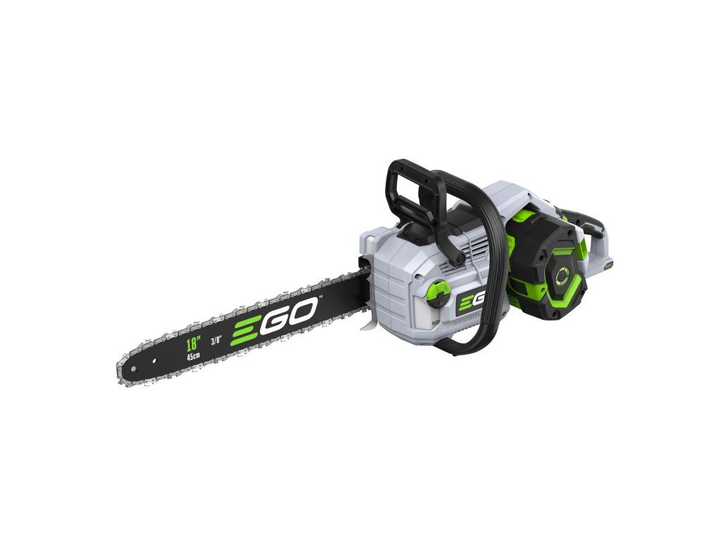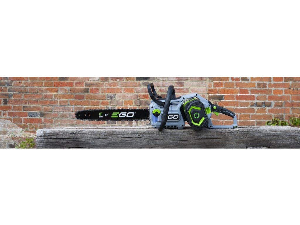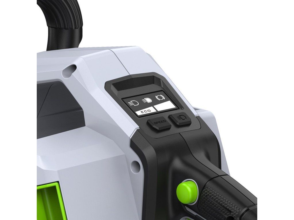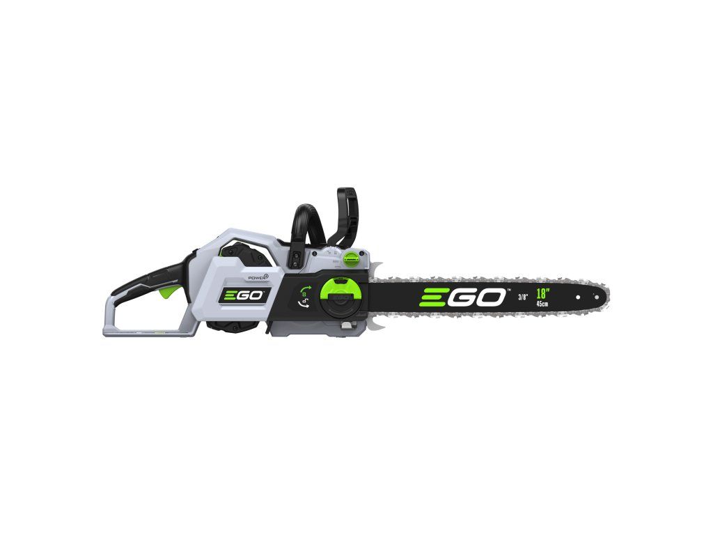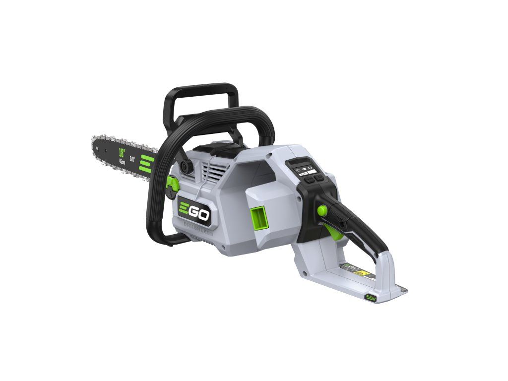 Ve srovnání se svojí předchůdkyní o necelý kilogram zhubla, změnila se celková koncepce rámu pily a umístění baterie. Pro lehkou a přesnou práci a manipulaci je tak celá pila dokonale ergonomicky vyvážena. Lišta v celkové délce 45cm s řeznou rychlostí 22,0m/s poskytuje pile mimořádnou schopnost si poradit i s rozměrnějším kmenem a patří tak k nejvýkonnějším hobby AKU řetězovým pilám na trhu. Řezná rychlost se dá zvolit ve 2 režimech, tzn. ECO a MAX. V případě řezání menších a měkkých dřevin lze zvolit režim ECO, ve kterém se sníží výkon pily na ekonomickou úroveň a šetří se tak baterie. Madlo držení je opatřeno bezpečnostní pojistkou, která zaručuje v případě uvolnění okamžité vypnutí stroje. Na rukojeti je umístněn vypínač, který zajišťuje při stisknutí plynulé a postupné spuštění stroje. Nad rukojetí s vypínačem je umístěn panel s dobře čitelným LCD displejem. Na panelu jsou dobře přístupná tlačítka volby řezné rychlosti ECO nebo MAX., zapínání LED světla. Displej zobrazuje kontrolky zvoleného řezného režimu, zapnutého světla a zapnuté brzdy řetězu. Díky příjemné ovládácí rukojeti a umístění baterie je držení pily při práci velmi stabilní, bezpečné a pohodlné a stroj je vhodný pro jakékoliv zahradnické práce v domácím použití. Výkonné LED světlo vám dokonale osvětlí pracovní prostor. Ideální pro tesaře na konstrukci krovů k osvětlení pracovního prostoru při přesné práci za snížené viditelnosti na stavbách. Mazání řetězu je zde plně automatické a díky spolehlivému olejovému čerpadlu je podáváno příslušné množství mazacího oleje přímo do vodící drážky lišty. Díky konstrukci lišty a posuvu řetězu se dopraví každá kapka mazacího oleje přesně tam kde je to nutné. Pro kontrolu hladiny mazacího oleje je pila opatřena kontrolním olejoznakem. Na pohon pily lze použít jakoukoliv baterii ze sortimentu EGO a např. baterie 2,5Ah vám umožní uskutečnit až 110 řezů a s baterií 5,0Ah až 270 řezů. Naše lithiové baterie EGO Power+ 56V Arc Vám poskytnou dostatek energie pro pohon dostatečně výkonného a účinného bezuhlíkového elektromotoru s přímým náhonem na řetězku. Díky externímu umístění baterie mimo kapotáž pily je baterie efektivněji ochlazována. Pila je mimořádně tichá a sousedé Vás při práci ani neuslyší. Žádná napájecí šňůra, žádné provozní náplně, žádný hluk, žádný zápach. Nízká hmotnost, pohodlný úchop a snadná manipulace dělají z této řetězové pily vynikajícího pracanta nejenom na chalupě, ale i v rukou pracovníka obecní údržby zeleně.