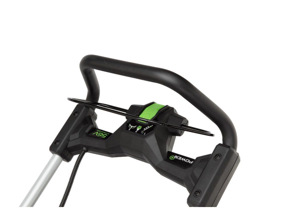 Model EGO LM 1700E - záběr sečení 42cm, bez vlastního pojezdu, objem sběrného koše 55L, teleskopická a výškově nastavitelná komfortní rukojeť.