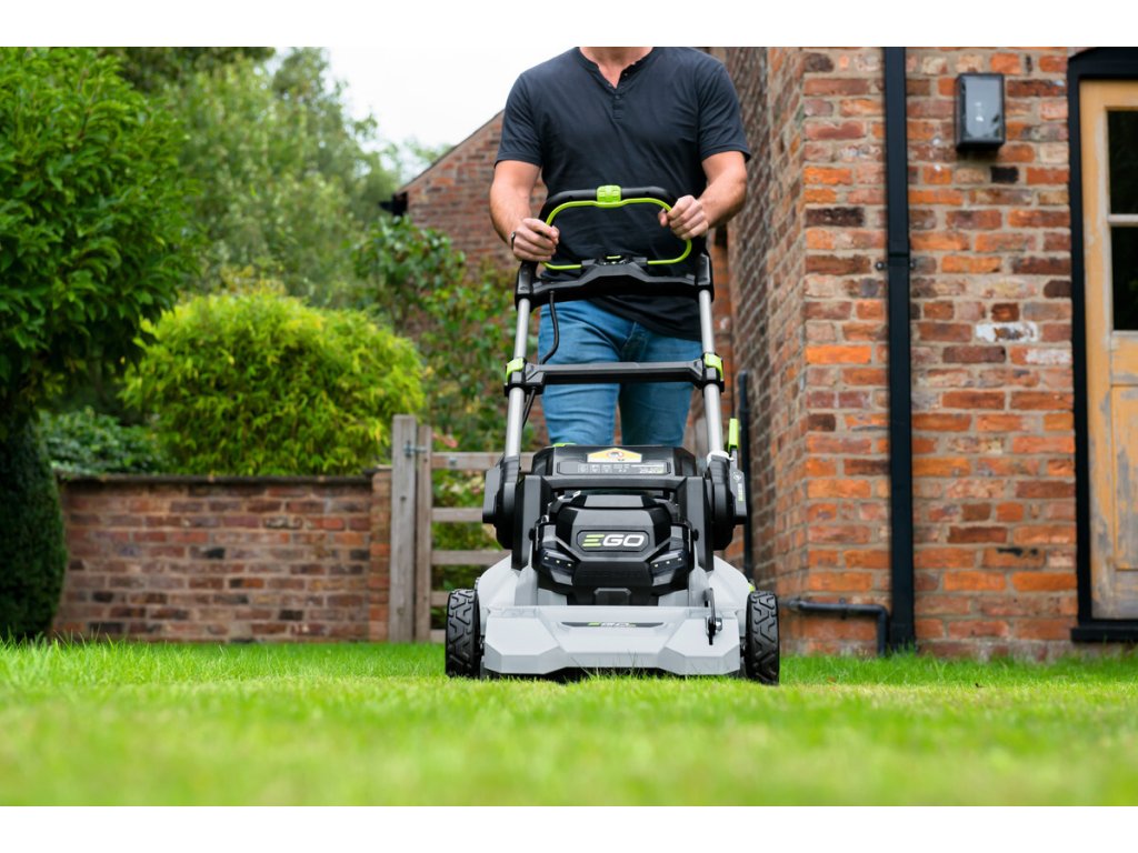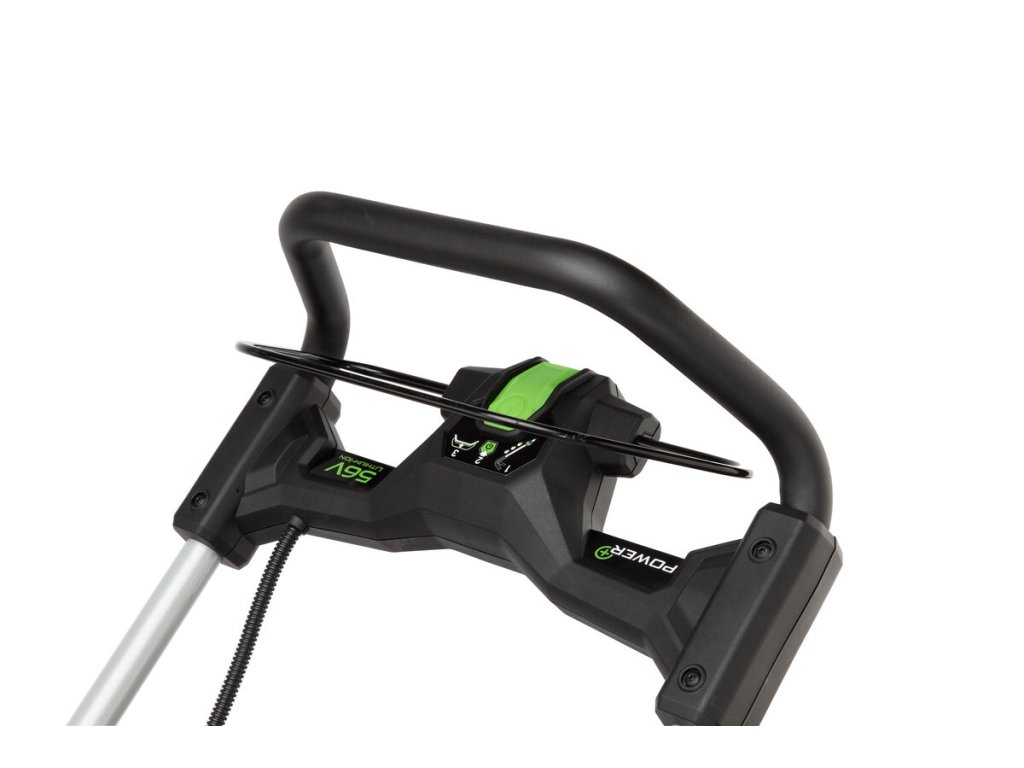 Model EGO LM 1701E - záběr sečení 42cm, bez vlastního pojezdu, objem sběrného koše 55L, teleskopická a výškově nastavitelná komfortní rukojeť.
