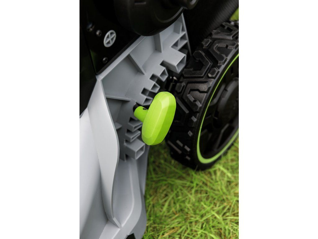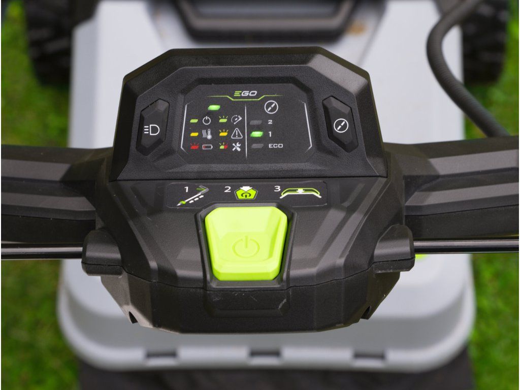 Model EGO LM 1912E - záběr sečení 47cm, bez vlastního pojezdu, volič režimu sekání, objem sběrného koše 55L, teleskopická a výškově nastavitelná komfortní rukojeť.
