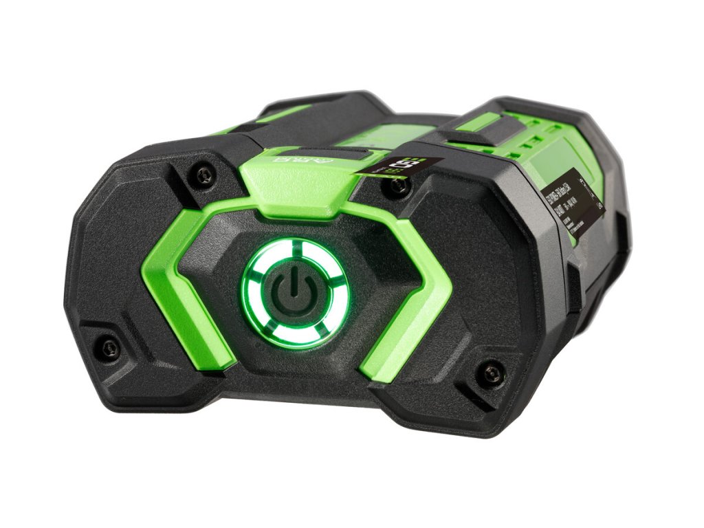 Nylonová žací struna o ∅ 2,4mm namotaná na cívce poloautomatické strunové hlavy se při práci v případě potřeby automaticky prodlouží pouhým poklepem strunovou hlavou o zem. Když je zásoba struny na cívce spotřebována, její doplnění je velmi snadné. Průlomová technologie EGO PowerloadTM zcela odstraňuje mnohdy problematické doplňování náhradní struny a automaticky náhradní strunu doplní a navine za vás během několika vteřin. Stačí provléci náhradní strunu strunovou hlavou, stlačit zelené tlačítko PowerloadTM a nechat systém, aby strunu navinul sám a proces dokončil. Spolehlivý systém tak umožní pracovat bez přerušení i méně technicky zdatným uživatelům a včas dokončit svoji práci. Dokonalá ochrana před odlétávající trávou je zajištěna díky rozměrnému a robustnímu bezpečnostnímu krytu. Na pohon vyžínače lze použít jakoukoliv baterii ze sortimentu EGO a např. baterie 2,5Ah vám umožní pracovat nepřetržitě 30 minut a s baterií 5,0Ah dokonce hodinu. Naše lithiové baterie EGO Power+ 56V Arc Vám poskytnou dostatek energie pro pohon výkonného a účinného bezuhlíkového motoru pro dokončovací práce při likvidaci travního porostu kolem zídek, plotů, stromů, keřů a jiných překážek. Díky možnosti volby rychlosti otáčení žací struny Vás sousedé při práci ani neuslyší a Vy díky nízké hmotnosti a dokonalému vyvážení stroje ani nepocítíte únavu.