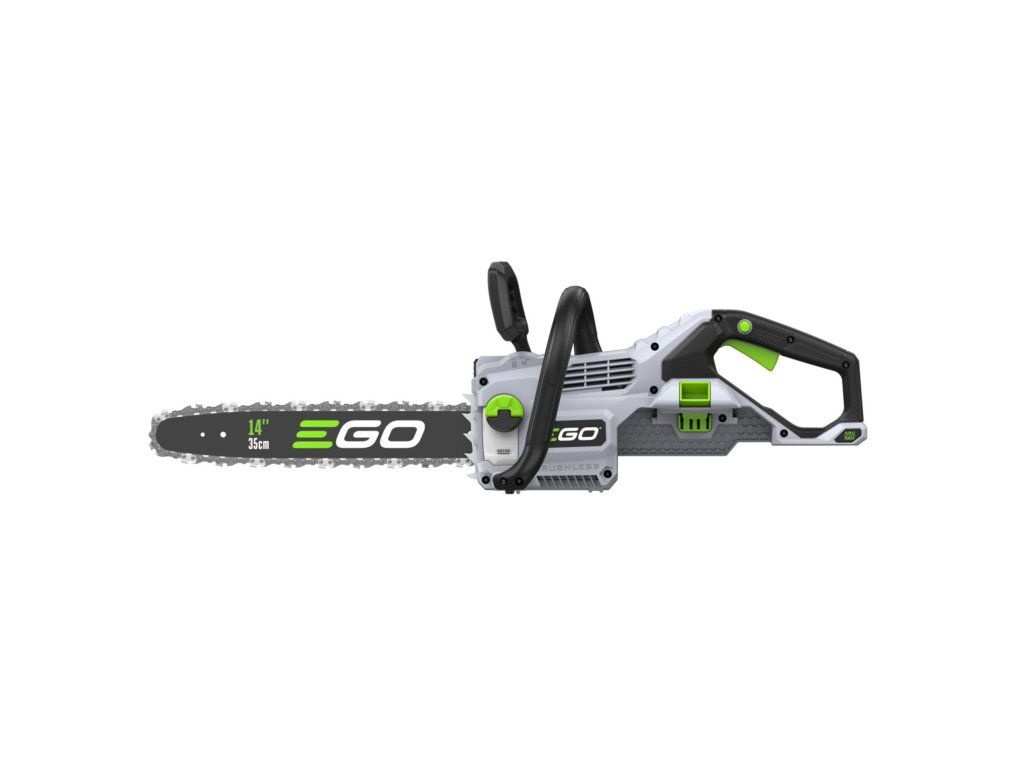 Pro lehkou a přesnou práci a manipulaci je celá pila dokonale ergonomicky vyvážena. Kratší lišta v celkové délce 35cm poskytuje pile mimořádnou ovladatelnost. Madlo držení je opatřeno bezpečnostní pojistkou, která zaručuje v případě uvolnění okamžité vypnutí stroje. Na rukojeti je umístněn vypínač, který zajišťuje při stisknutí plynulé a postupné spuštění stroje. Díky příjemné ovládácí rukojeti je držení pily při práci velmi stabilní, bezpečné a pohodlné a stroj je vhodný pro jakékoliv zahradnické práce v domácím použití. Pomocí "semi-automatic" zařízení je napínání pilového řetězu velmi jednoduché a není potřeba žádného nářadí. Ztrátové mazání řetězu je zde plně automatické a díky spolehlivému olejovému čerpadlu je podáváno příslušné množství mazacího oleje přímo do vodící drážky lišty. Díky konstrukci lišty a posuvu řetězu se dopraví každá kapka mazacího oleje přesně tam kde je to nutné. Pro kontrolu hladiny mazacího oleje je pila opatřena kontrolním olejoznakem. Na pohon pily lze použít jakoukoliv baterii ze sortimentu EGO a např. baterie 2,5Ah vám umožní uskutečnit až 130 řezů a s baterií 5,0Ah až 300 řezů. Naše lithiové baterie EGO Power+ 56V Arc Vám poskytnou dostatek energie pro pohon dostatečně výkonného a účinného bezuhlíkového elektromotoru s přímým náhonem na řetězku. Díky externímu umístění baterie mimo kapotáž pily je baterie efektivněji ochlazována a je schopna efektivněji napájet motor pily. Pila je mimořádně tichá a sousedé Vás při práci ani neuslyší. Žádná napájecí šňůra, žádné provozní náplně (kromě oleje pro mazání řetězu), žádný hluk, žádný zápach a minimální údržba. Nízká hmotnost, pohodlný úchop a snadná manipulace dělají z této řetězové pily vynikajícího pomocníka do každé chalupy.