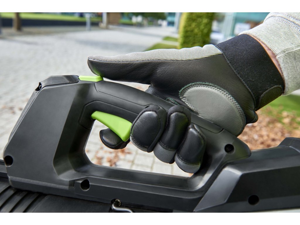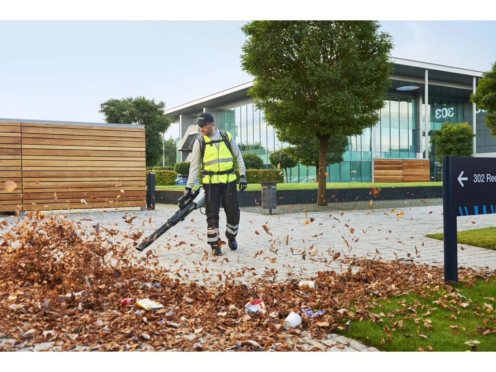 Profesionální úklid povrchů vyžaduje výkonný a spolehlivý stroj. Uklizený trávník na podzim v zámeckých zahradách, parcích nebo na zahradách většinou zakryje vrstva spadaného listí z okolních stromů. Nebo čisté chodníky ve městech, areálech nemocnic, škol a dalších institucí citlivých na hlučnost zbavené zbytky posečené trávy a jiných nečistot. To je práce přesně pro tento profesionální fukar. EGO Power+ Professional X fukar díky výkonné turbíně a zvýšenému režimu "BOOST" vyfukuje vzduch rychlostí až 212km/h. To je dostatečný výkon pro odklizení spadaného listí z parku nebo pro úklid chodníku od zbytků posečené trávy, prachu a jiných nečistot. Dokonce je schopen spolehlivě "odfouknout" i vrstvu lehkého, čerstvě padlého sněhu z chodníků či parkovišť. Pro pohodlnou práci je napájecí baterie nesena na ramenou obsluhy a komfortní postroj dokonale rovnoměrně rozkládá hmotnost baterie na obě ramena. Pro snadnou manipulaci je celý stroj dokonale ergonomicky vyvážen. Velkokapacitní výfukový tubus s možností použití ploché trysky obluha snadno nasměruje přesně do místa. Rukojeť na tubusu se přizpůsobí každé postavě uživatele a je opatřena bezpečnostní pojistkou, která zaručuje v případě uvolnění okamžité vypnutí stroje. Na rukojeti je umístněn vypínač, který zajišťuje při stisknutí plynulé a postupné spuštění stroje a voličem pracovní rychlosti. V horní části rukojeti je v dosahu prstu umístěno tlačítko "BOOST". Díky příjemné ovládácí rukojeti potažené měkčenou gumou, je držení a ovládání fukaru při práci velmi stabilní, bezpečné a pohodlné. Na pohon fukaru lze použít jakoukoliv baterii ze sortimentu EGO Power+ Professional X a např. baterie 28Ah vám umožní pracovat nepřetržitě až 6 hodin. Naše lithiové baterie EGO Power+ Professional X Vám poskytnou dostatek energie pro pohon dostatečně výkonného a účinného bezuhlíkového elektromotoru s přímým náhonem na vysokorychlostní turbínu. Stroj je mimořádně tichý a vhodný proto na použití v obydlené zástavbě, areálech nemocnic, škol a vůbec všech míst, která jsou citlivá na hlučnost a zápach. Díky nízké hmotnosti a dobrému vyvážení stroje nepocítíte únavu ani po celodenní práci. Žádná napájecí šňůra, žádné provozní náplně, žádný hluk, žádný zápach. Stroj pro skutečné specialisty na profesionální údržbu veřejného prostranství.