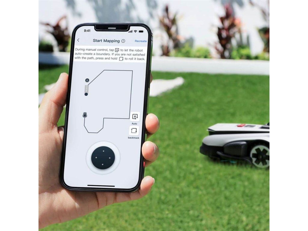 Přes aplikaci ECOVACS HOME můžete zvolit režim sečení, který nejlépe vyhovuje vašim požadavkům. V režimu Auto je k dispozici jemné sečení (Delicate) s rychlostí sečení 0,4 m/sa výkonné sečení (Efficient) s rychlostí sečení 0,7 m/s. K dispozici je i režim sečení oblastí (Area), manuální režim a také možnost nastavit úhel směru sečení při vystartování robotické sekačky ze stanice.