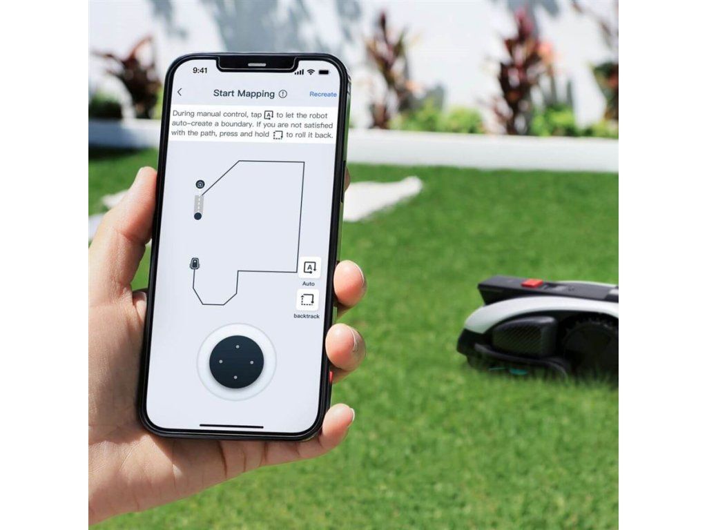 Přes aplikaci ECOVACS HOME můžete zvolit režim sečení, který nejlépe vyhovuje vašim požadavkům. V režimu Auto je k dispozici jemné sečení (Delicate) s rychlostí sečení 0,35 m/sa výkonné sečení (Efficient) s rychlostí sečení 0,5 m/s. K dispozici je i režim sečení oblastí (Area), manuální režim a také možnost nastavit úhel směru sečení při vystartování robotické sekačky ze stanice.