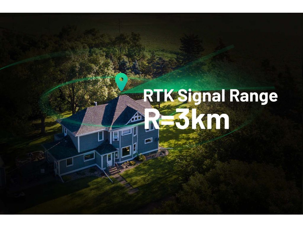 Technologie určování polohy RTK-GNSS zajišťuje přesnost polohování na úrovni centimetrů s možností rozšíření dosahu signálu až 3 kilometry.